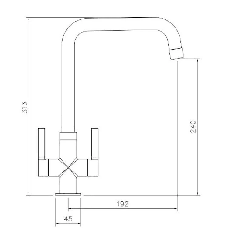 - Tap Dimensions: Overall Height – 313mm; Spout Height – 240mm; Spout Reach – 192mm; Base/Handle Width – 45mm