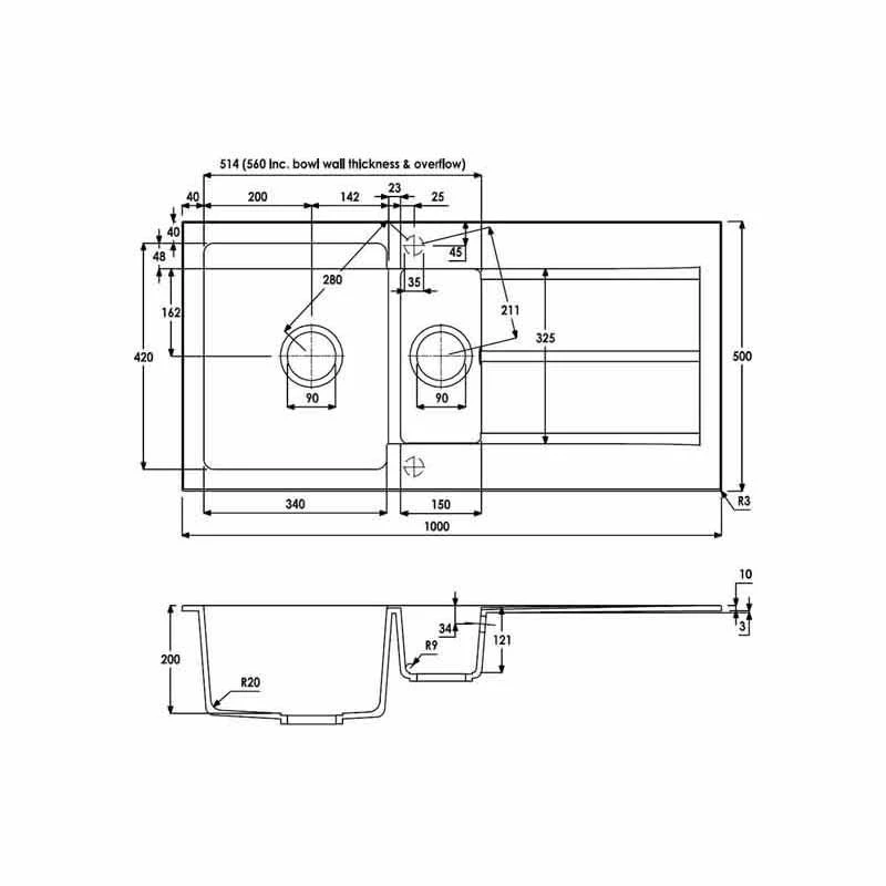 Abode Zero 1.5 Bowl & Drainer Granite Sink – AW3164 Details