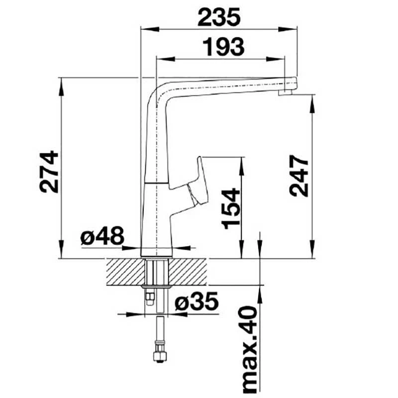 This Blanco kitchen tap is designed in Germany to the highest standards. It is 284mm high and has a Chrome finish in a contemporary design and operates via a single side lever.