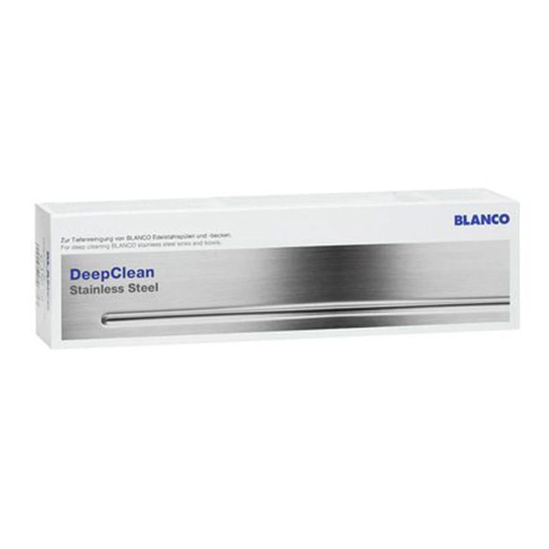 The Blanco DeepClean Stainless Steel 150ml for Sinks and Bowls is used for deep cleaning of Blanco stainless steel sinks and bowls. Helps to remove small scratches, stains and extraneous rust.