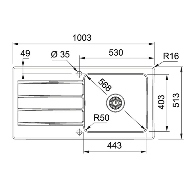 - Position of drainer: Reversible