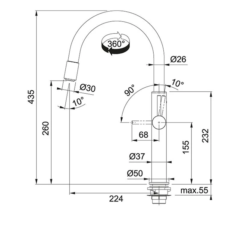 Franke’s Pescara Swivel Up & Down Kitchen Tap with Pull Down Spray adds a stylish design feature to fit your space offering the best of both worlds through design and sustainability, creating an appealing finish to accessorise your kitchen. It is is one of Franke taps range that will turn the heads of everyone who wanders in your kitchen, and it will easily become the room’s centrepiece. The clean design and detailed craftsmanship make Franke’s Pescara taps line ideal for those who savour simplicity combined with exquisite performance and a simple but impressive aesthetic.