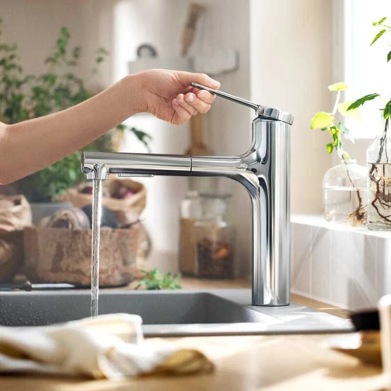 hansgrohe Zesis M33 Single Lever Kitchen Mixer Tap 160 With Pull-Out Spray 2Jet Sbox Lite – Chrome – 74804000