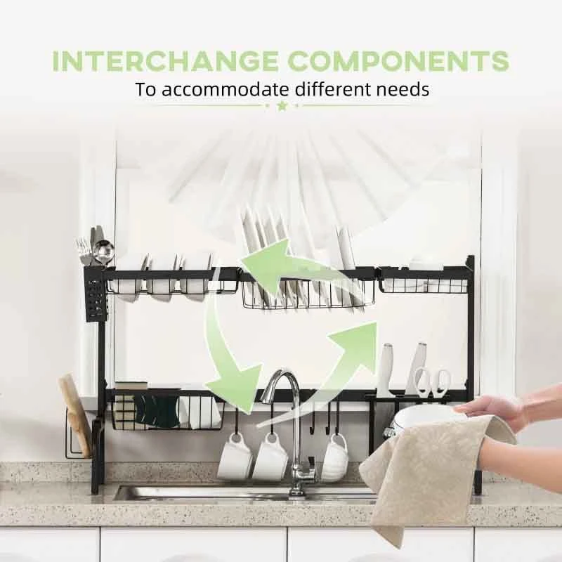 HOMCOM 2 Tier Adjustable Over The Sink Dish Drainer – Black – 801-286V00BK