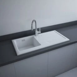 Abode Belfast Single Bowl Ceramic Kitchen Sink – White – AW1022