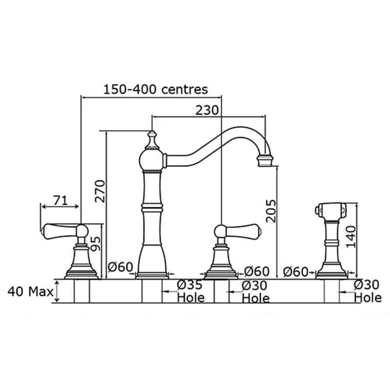 Designed to be deck mounted, the mixer comes with beautiful lever handles and a matching pull out hand spray. The separate pull out spray is easy to use and versatile, great for help when cooking, cleaning and filling large pots and pans. Not only that, the handles are also insulated, paired with a flexible hose that ensures safety and convenience.