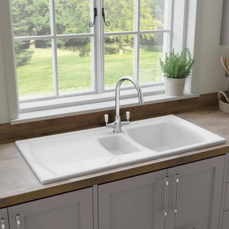 Rangemaster Tenby Fire Clay Ceramic Sink 1.5 Bowls – White – CTE10102WH/