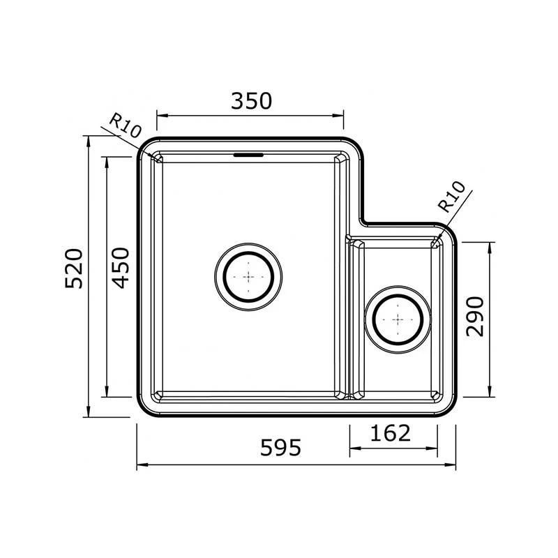 The Metro collection from Thomas Denby is a versatile range of bowls that can be installed as either undermount or inset installations. These sinks can be combined throughout your kitchen to provide a sophisticated look throughout your kitchen. This 1.3 bowl sink is perfect for washing up and the small bowl is perfect for rinsing. This sink makes washing up more efficent as the small bowl makes multitasking easy.